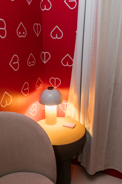 Il est donc logique que cette charte graphique soit constituée de tons rouges à roses, couleurs de la vie, de l’énergie, de la peau, de la chair, de l’amour. Nous avons alors habillé ce salon d’un rouge vivifiant, et paré les murs de pictogrammes illustrant différentes parties du corps.